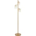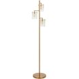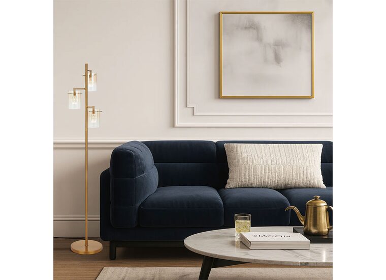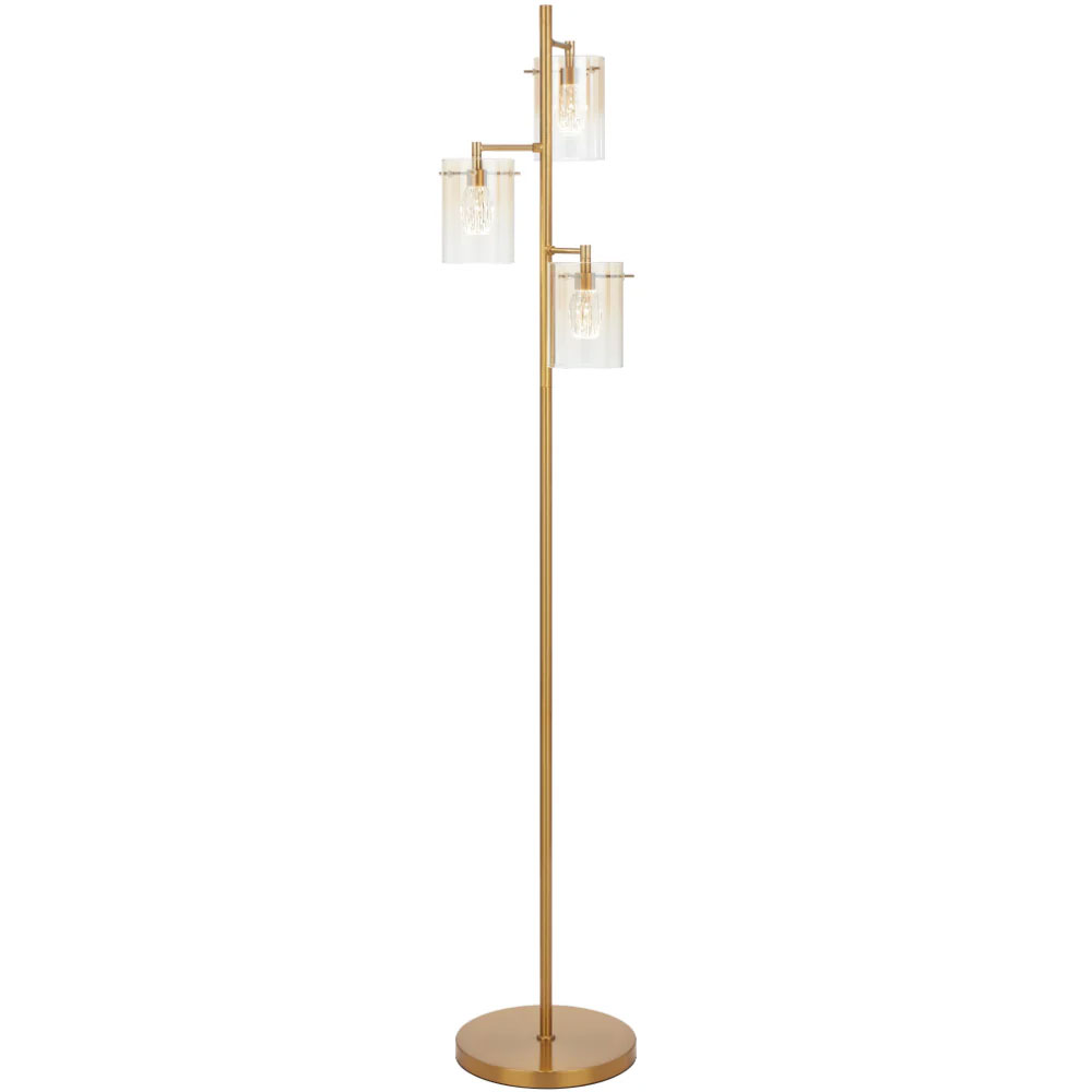 The Crevil collection pairs sturdy iron construction with refined glass shades, available in black with smoke glass or antique gold with amber glass.