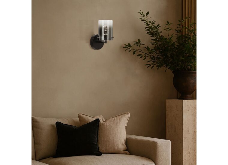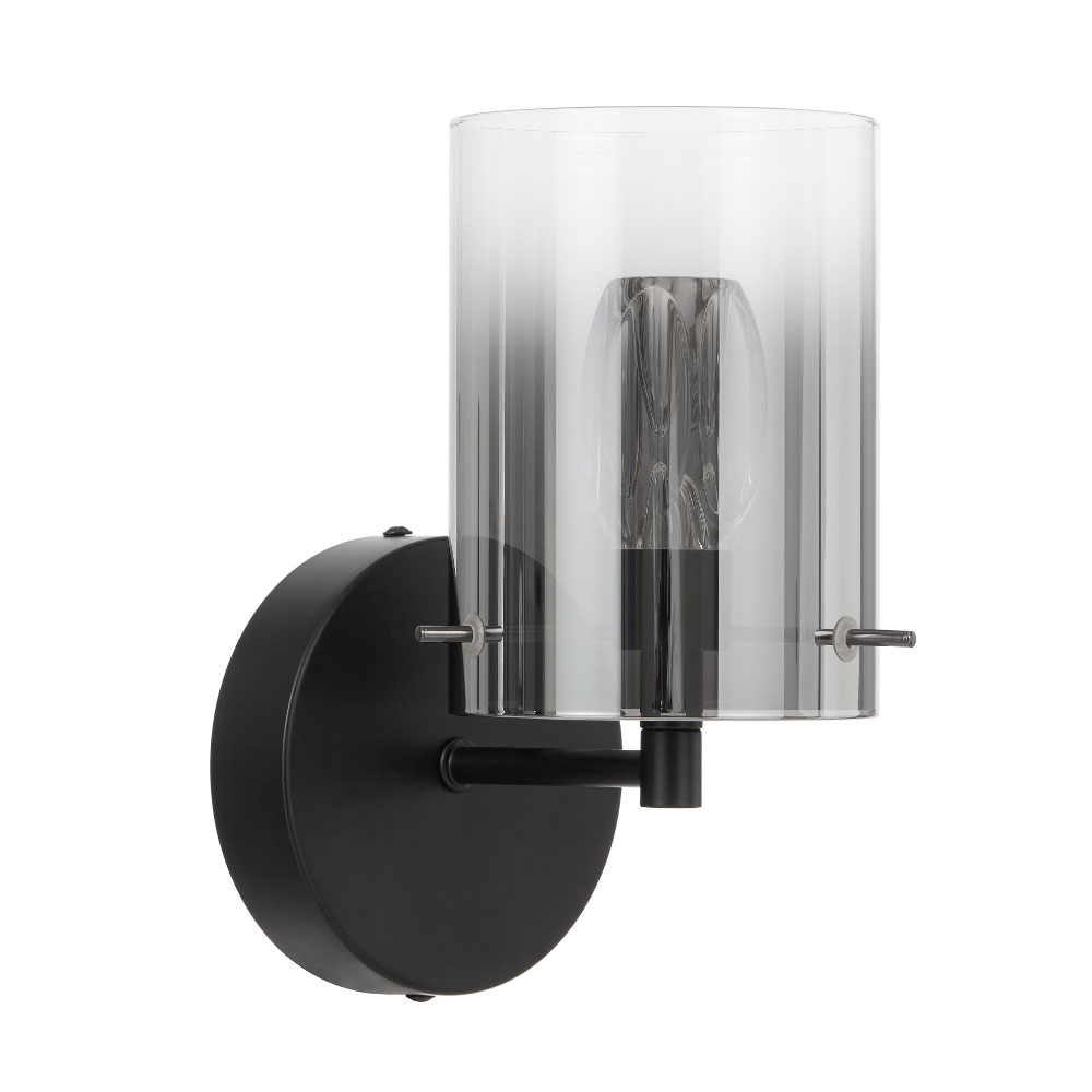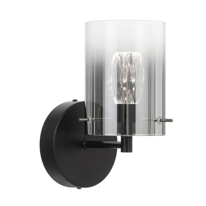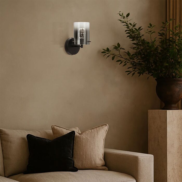 The Crevil collection pairs sturdy iron construction with refined glass shades, available in black with smoke glass or antique gold with amber glass.