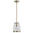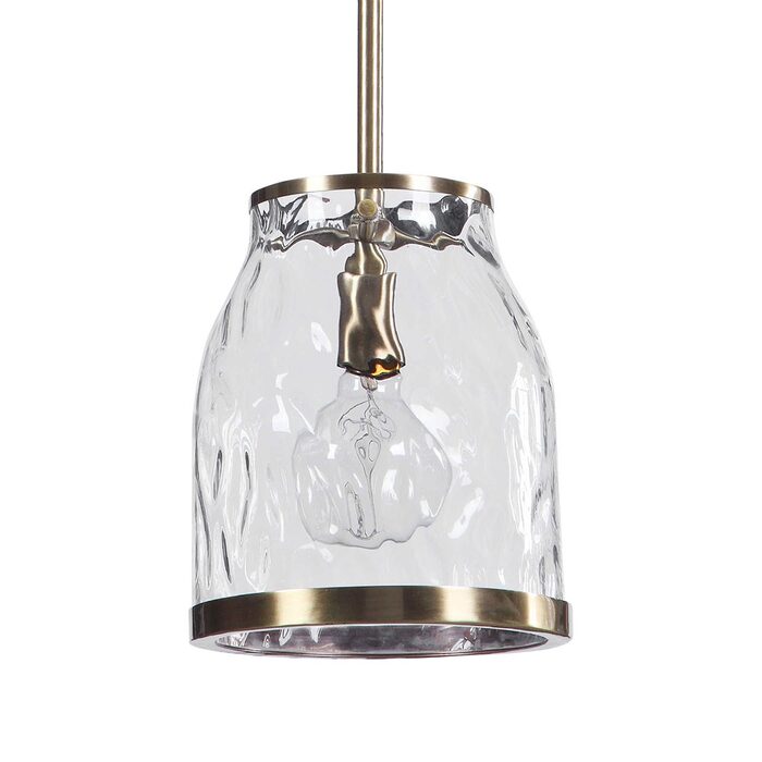 With an interesting bell shape in clear watered glass our 1 Lt. mini pendant offers updated charm with a nod to traditional looks.