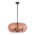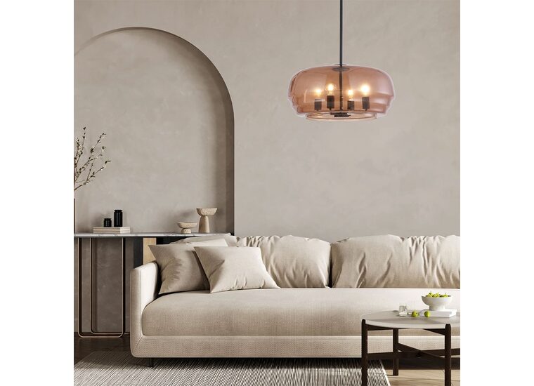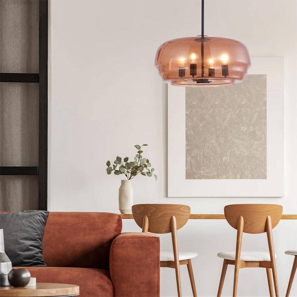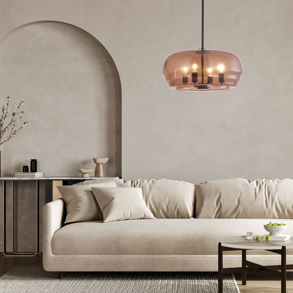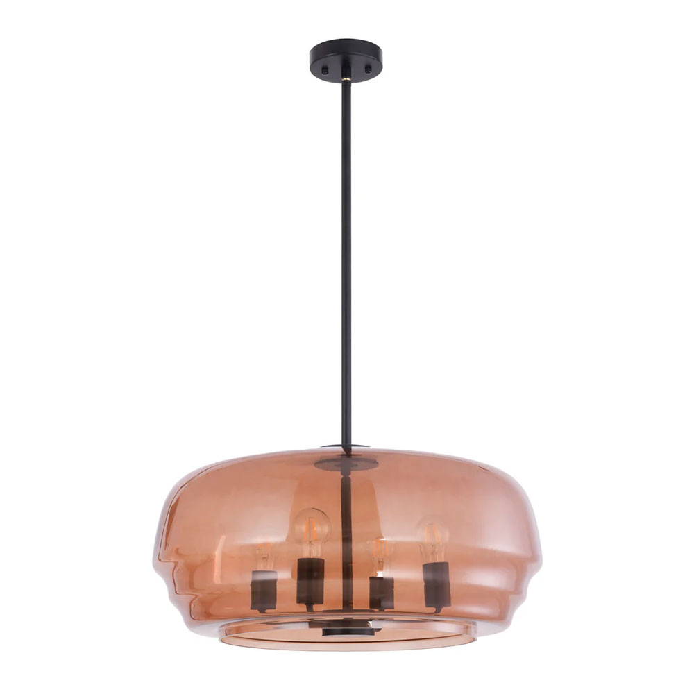 PENDANT 4 x ES 40W Amber Glass Shade w/Black Hardware & Rod Flat Top Dome OD600mm x H290mm 1.5m Rod WTY 1YR