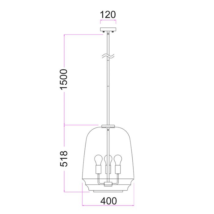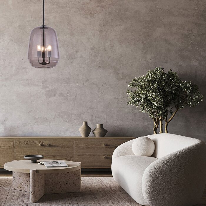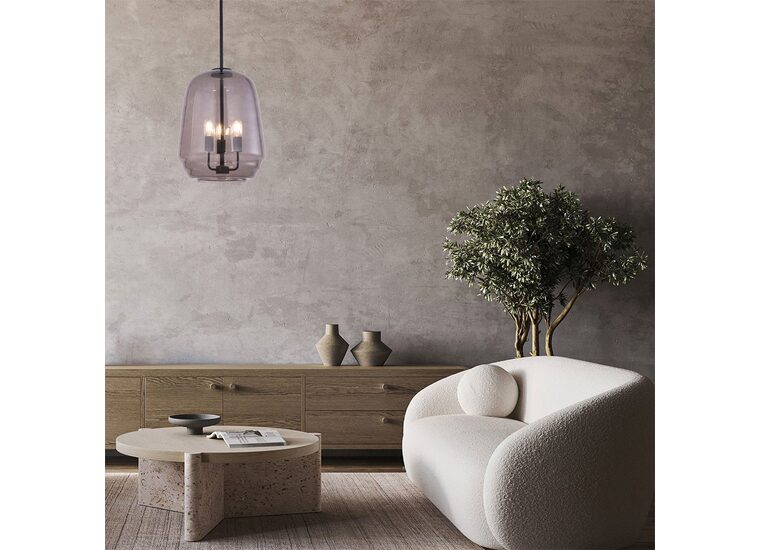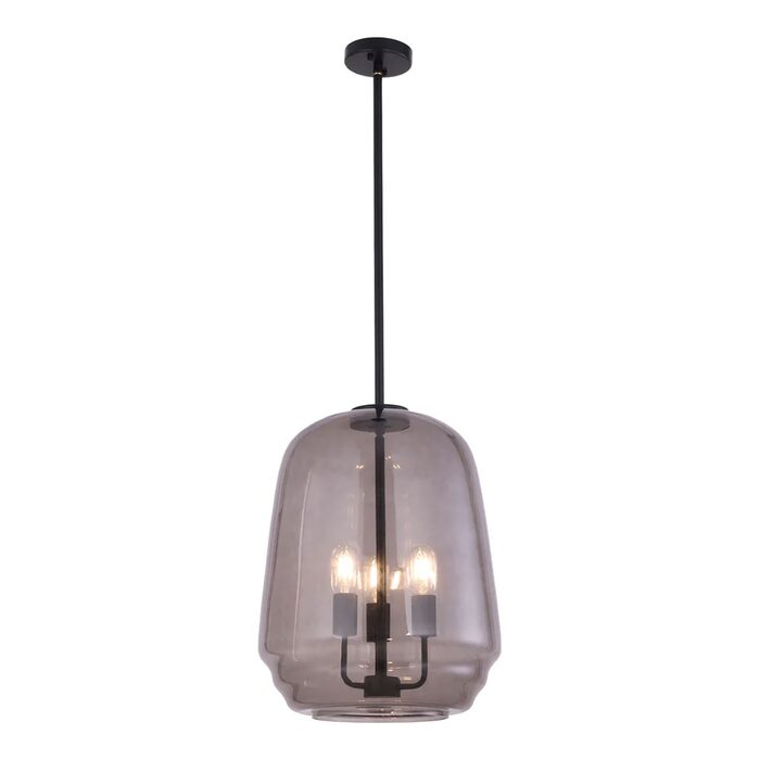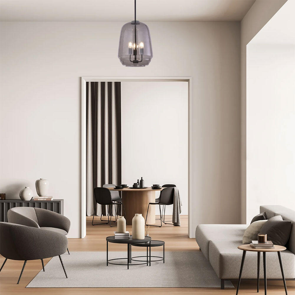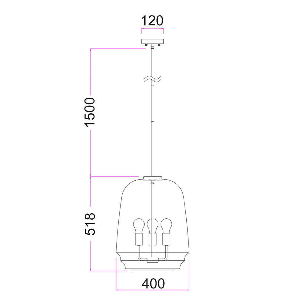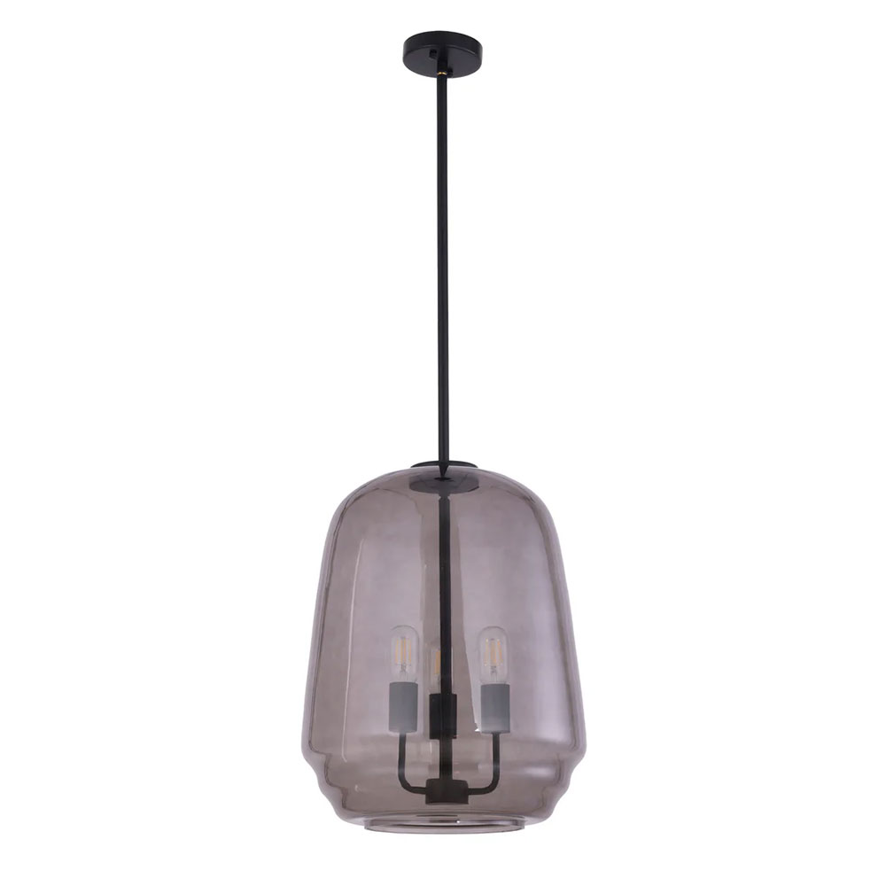 PENDANT 3 x ES 40W Smokey BLK Glass Shade w/Black Hardware & Rod Round Pyramid OD400mm x H518mm 1.5m Rod WTY 1YR