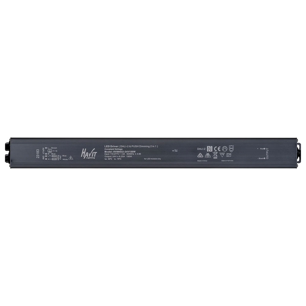 The Havit HV96632-24V150W is a 150W, 24V DC constant voltage LED driver designed for high-performance, dimmable lighting applications.