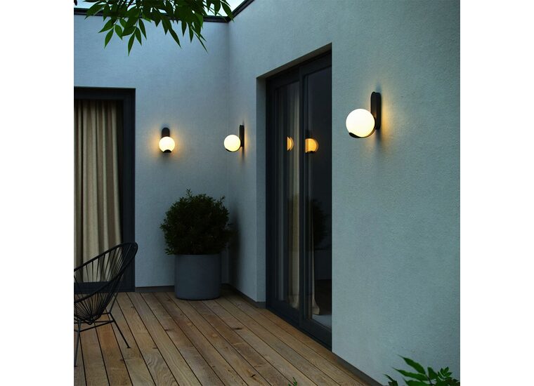 The large, opal matt dome elegantly rests on the curved wall base and ensures a soft, pleasant light.