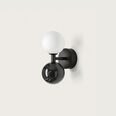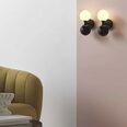 A harmonious combination of spherical shapes results in this decorative indoor wall light.