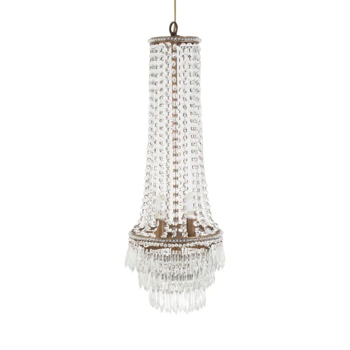 Darren long glass crystal chandelier is hand crafted suspended from ceiling chain is elegant focal point for any interior space.