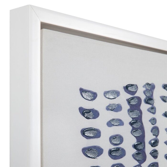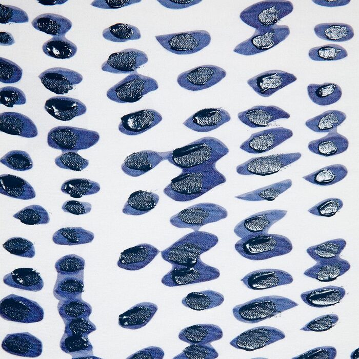 Threads of indigo blue in organic dotted line patterns create an art piece that is detailed yet intriguingly understated.