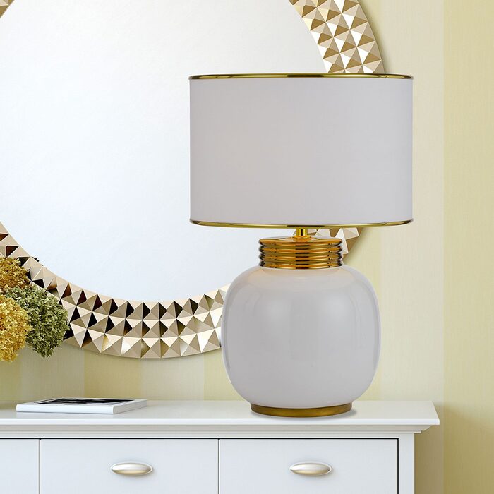 The design has an eye-catching gloss glazed body, accented in a radiant gold finish.
