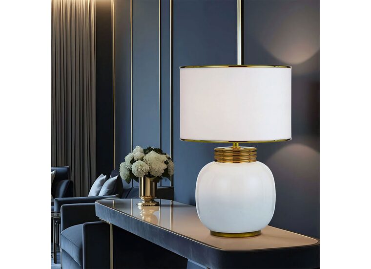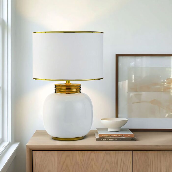 This sleek and modern ceramic lamp adds a luxe accent to any room.