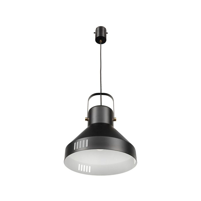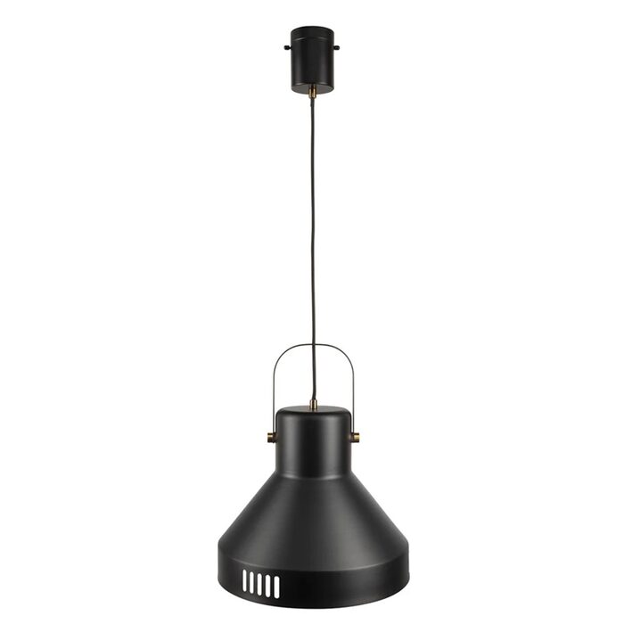 Powdercoated matt black metal. Matt black hardware and fabric cord. E27 42W max globe (not included)