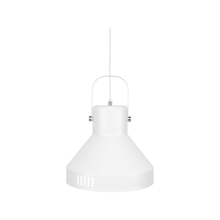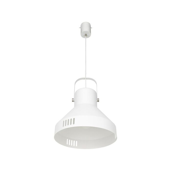 Powdercoated matt white metal. Matt white hardware and fabric cord. E27 42W max globe (not included)