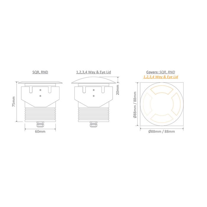 Round open cover & DEKA-BODY. 1 x 3W COB LED exterior inground light in Black anodised aluminium. 45˚ beam angle, ideal for inground path lighting, or low level wall lighting using the eyelid fascia. 12V DC wiring, LED Driver required. Non-dimmable. IP65. Complete with polycarbonate housing. Requires: 12VDC Constant Voltage LED Driver
