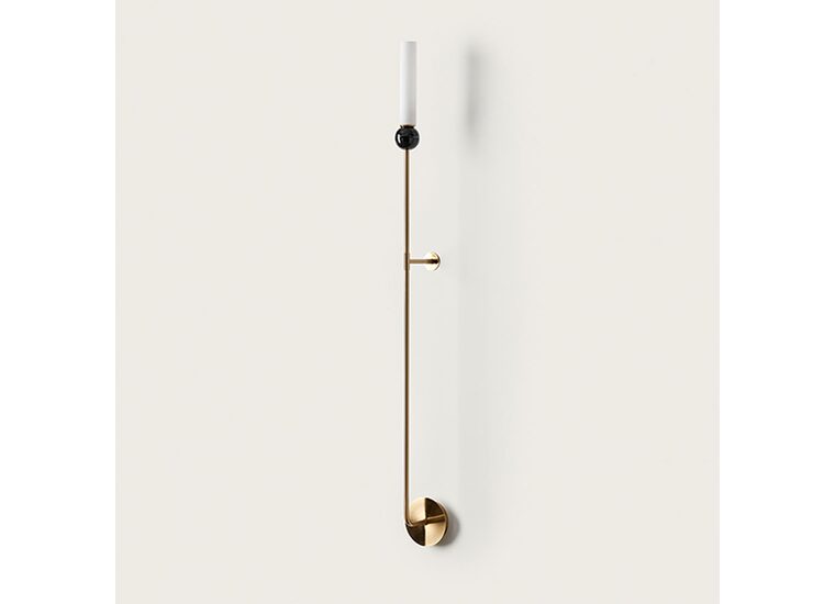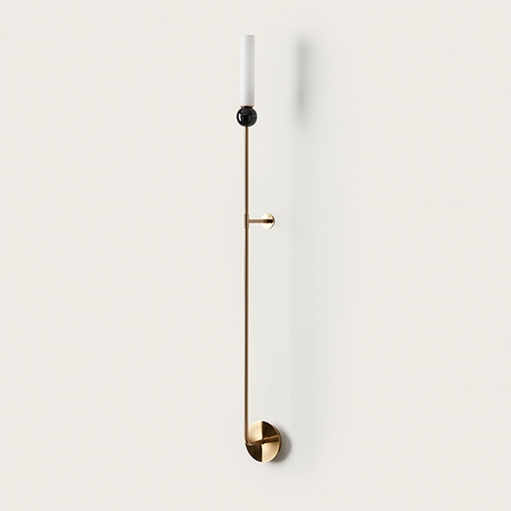 Delie Large Wall Light designed by JF Sevilla for Aromas Del Campo is a minimalist tubular indoor light fixture with an additional decorative marble accent.