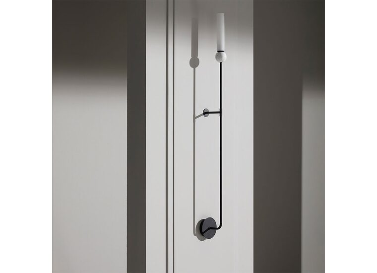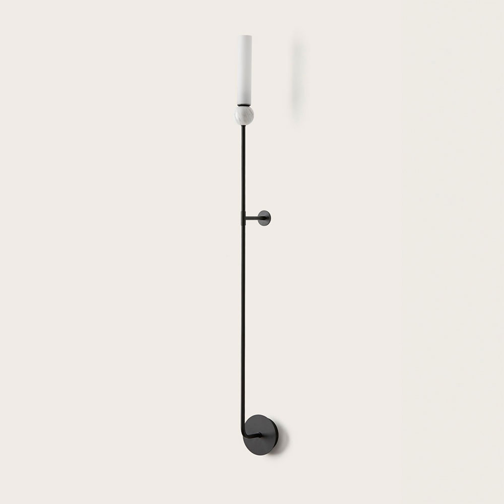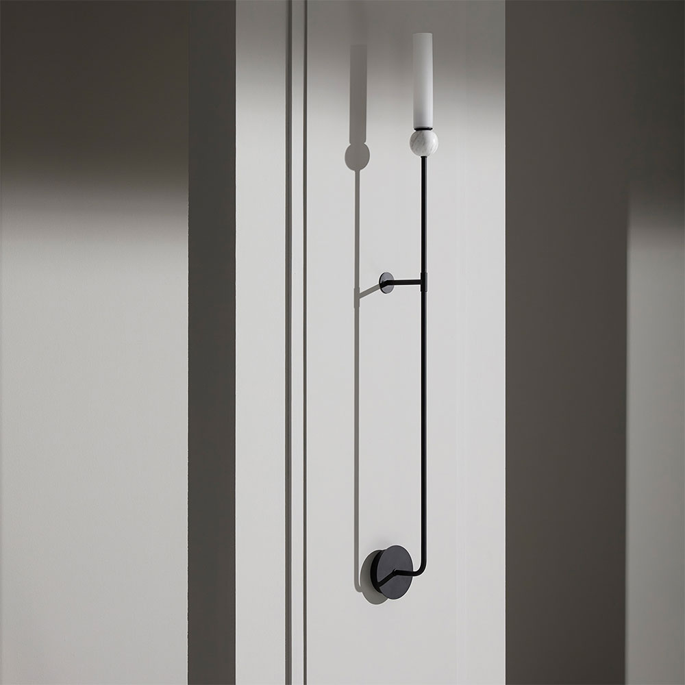 Delie Large Wall Light designed by JF Sevilla for Aromas Del Campo is a minimalist tubular indoor light fixture with an additional decorative marble accent.