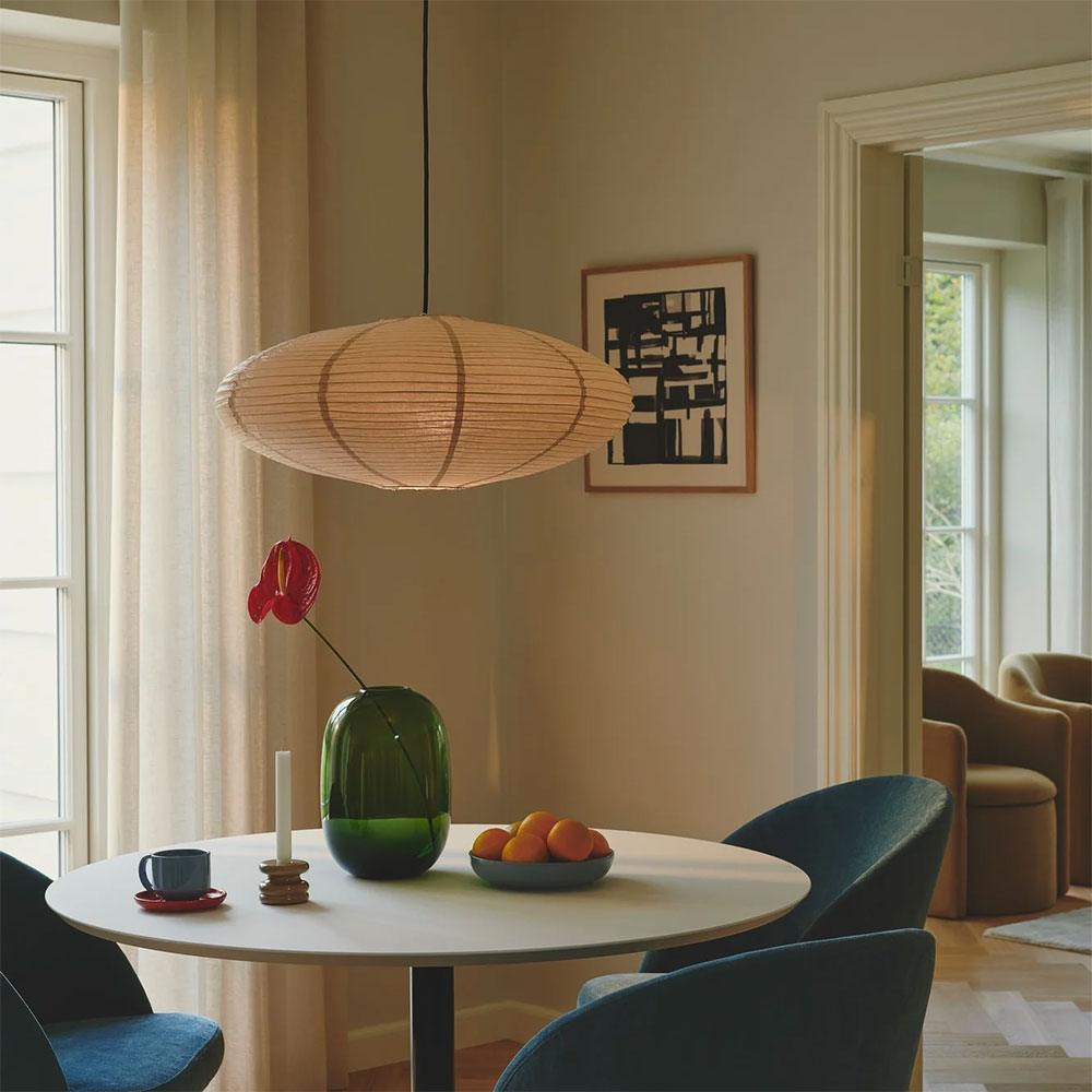 Pendant with a fabric cord that can be attached to the shade of your choice.