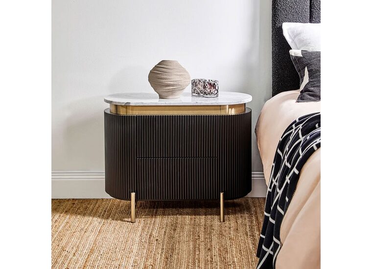An elegant blend of contemporary style and functional design, the Demarco bedside table in black boasts a mid-century modern profile with stunning ribbed detailing.
