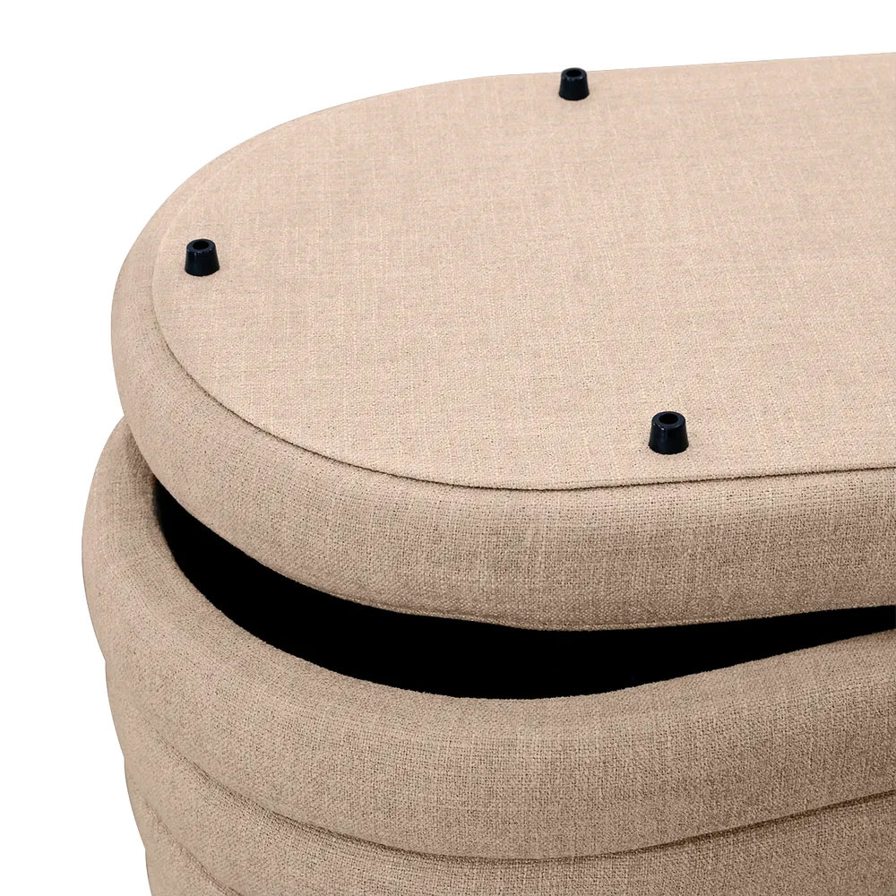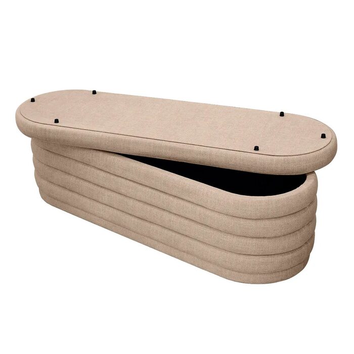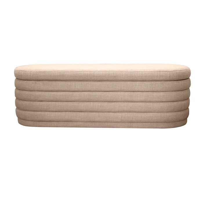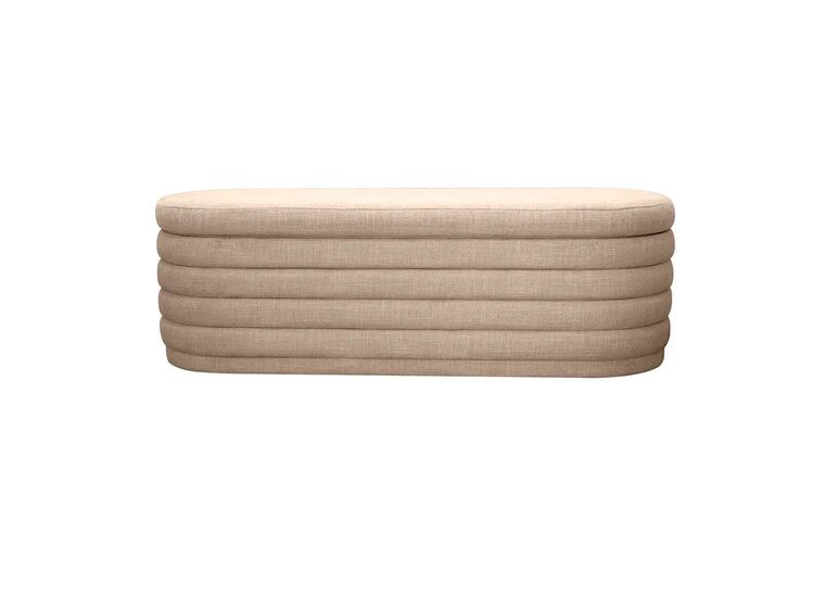 Enhance your interior with the refined Demi Storage Bench Ottoman, upholstered in elegant beige fabric as part of the distinguished Demi range.
