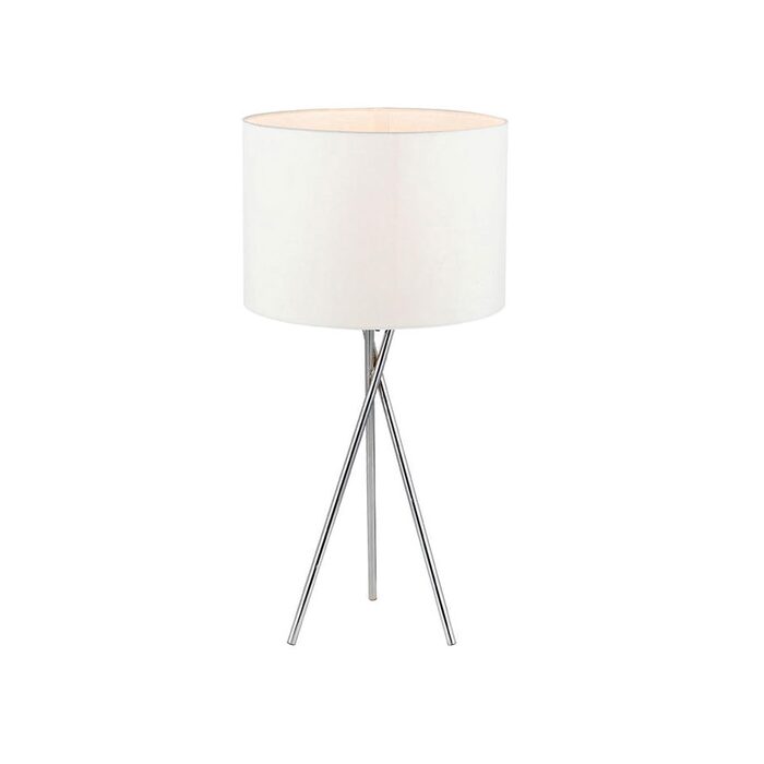 Create a warm and welcoming atmosphere in your home with a stylish table lamp. Whether for your loungeroom or for decoration, the Denise table lamp by Telbix Australia will complement your room without competing with it. Chrome finish tripod base with White shade.