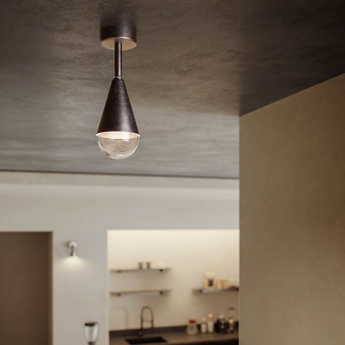 Dew Ceiling Light by Il Fanale showcases clear-cut lines that highlight the pure nature of iron.