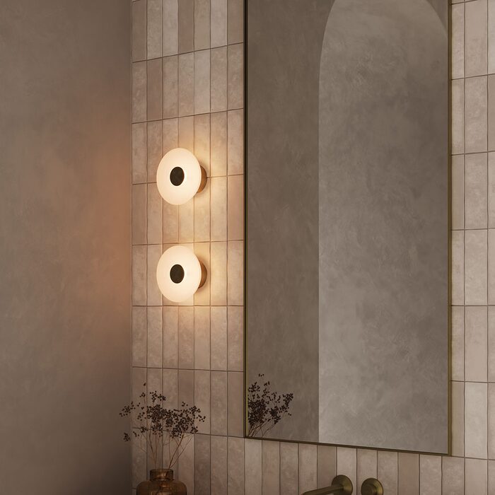 Dome Air Wall Light by Lighting Republic features a borosilicate glass shade and a central brass accent.