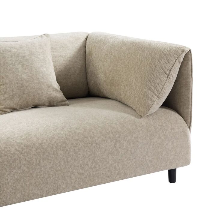 Crafted with a durable frame and upholstered in a selection of sophisticated fabric finishes including wheat, ivory and butterscotch, it integrates seamlessly into modern, transitional or soft industrial interiors.