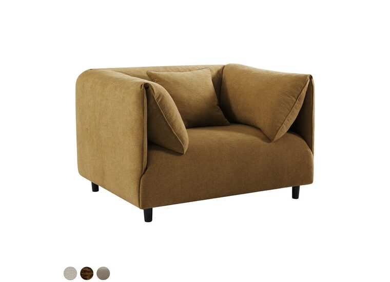 Upholstered in a selection of textural woven fabrics including wheat, ivory and butterscotch, this piece adds visual warmth and tactile appeal to a variety of interior schemes.