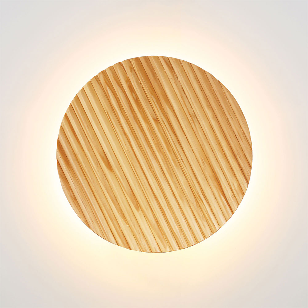 The DOT backlit wall sconce in the beautiful, scalloped timber is the perfect blend of natural elements with modern LED lighting technology.