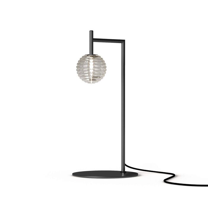 Doul Table Lamp designed by Agus Gascón for Aromas del Campo is part of a graceful collection of striped transparent glass and metal fixtures.