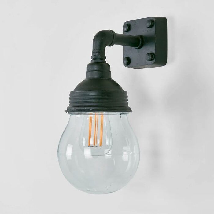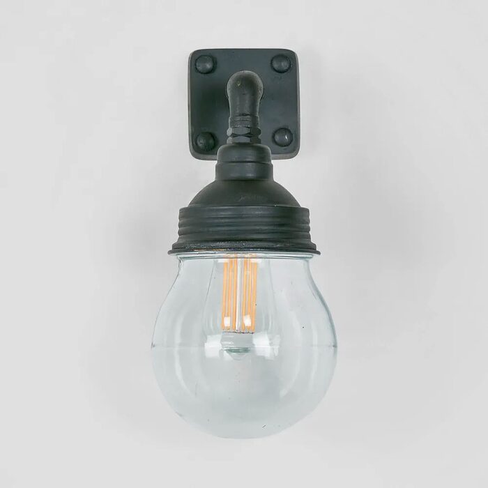 Our Dover wall light is IP-rated 54 wall-sconce with clear glass ball and suitable for indoor and outdoor use.
