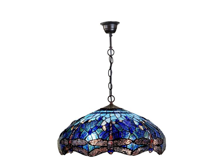 The Dragonfly lamp is a colourful Tiffany style lamp that combines many pieces of art glass to create a stunning and complex design.