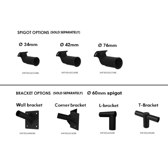 - Spigot and Bracket Options are available and sold separately