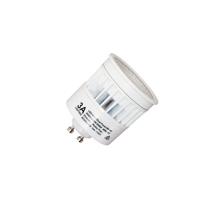 Dimmable, 4W / 8W GU10 LED lamp with selectable power and CCT