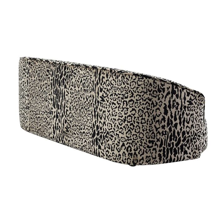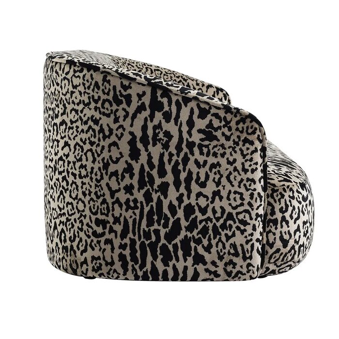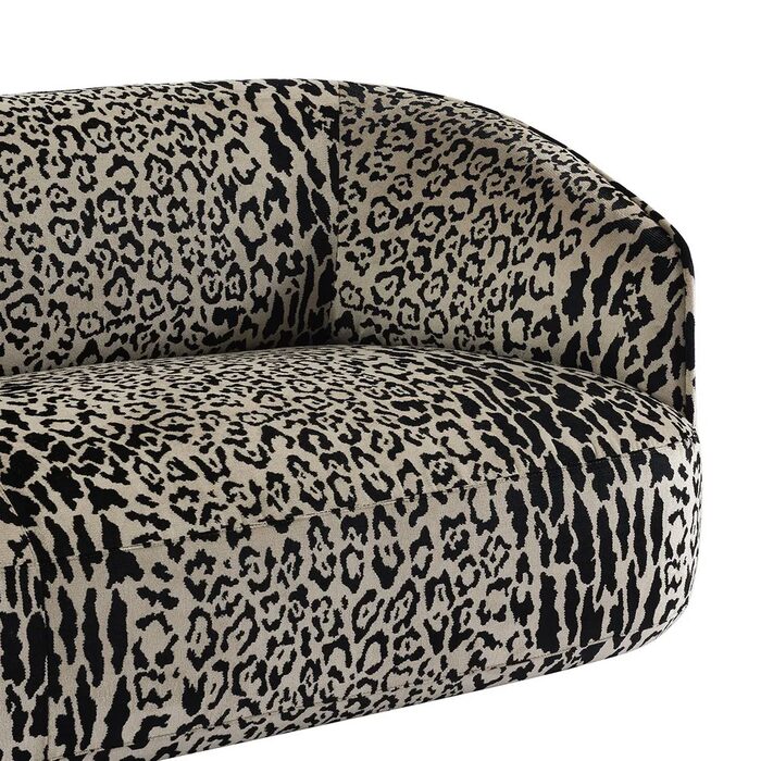 Upholstered in a striking leopard-patterned fabric, its smooth curves and generous cushioning create a dramatic silhouette with undeniable presence.