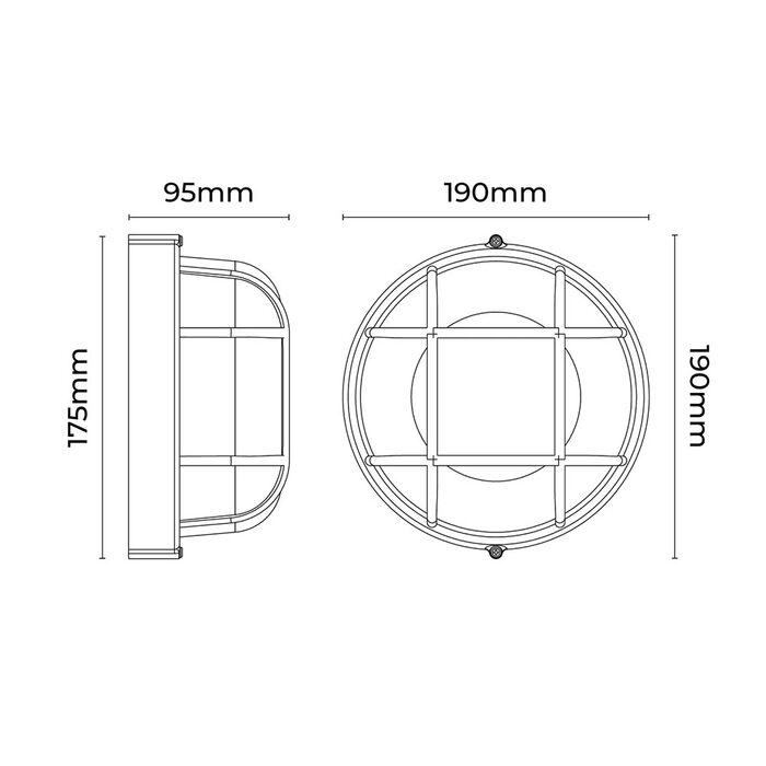The Duro Round Caged Outdoor Bunker combines rugged industrial design with modern functionality, featuring a durable die-cast aluminum frame and frosted glass diffuser that creates soft, glare-free illumination perfect for both indoor and outdoor spaces.