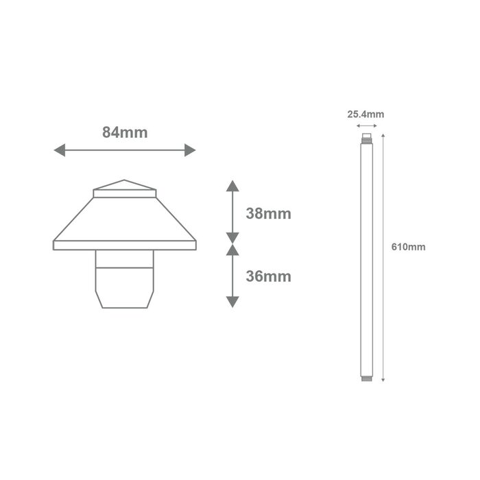Available in Two Post height options: 457mm and 610mm, as well as the choice of small, medium and large mushroom head sizes, allowing for the perfect look for your garden bed or pathway.