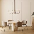 A contemporary and minimal chandelier with a striking presence and versatility that allows it to sit equally well in various interior settings.