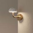 Dussa Wall Light by Aromas Del Campo features a compact marble dome shade which stems from a slimline steel arm and circular backplate.