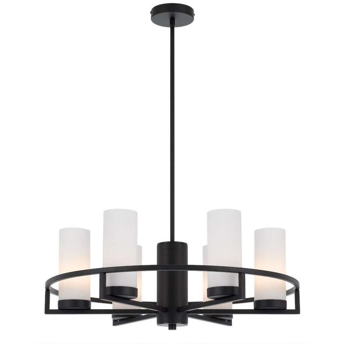 The Eamon lighting family is round and radiant and will give any room an upscale update. The hand crafted circular frame host the mouth blown opal matt cylindrical shades that will provide perfect lighting for dining and living areas. Available as a 2 light wall lamp and a 6 or 8 light pendant, anf finished in Black or Brass matt.