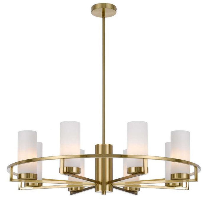 The Eamon lighting family is round and radiant and will give any room an upscale update. The hand crafted circular frame host the mouth blown opal matt cylindrical shades that will provide perfect lighting for dining and living areas. Available as a 2 light wall lamp and a 6 or 8 light pendant, anf finished in Black or Brass matt.