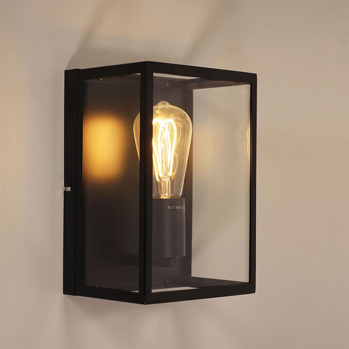 Eaton wall light has clear glass sides, but is open on the top and bottom (suitable for internal use only).
