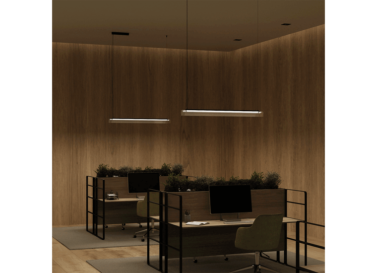 Designed for impact, it sits confidently above long dining tables, kitchen islands, or in commercial settings, delivering balanced illumination and a sleek, linear aesthetic.