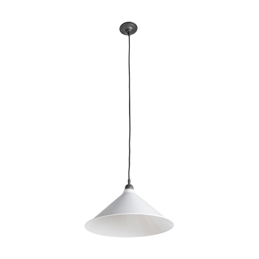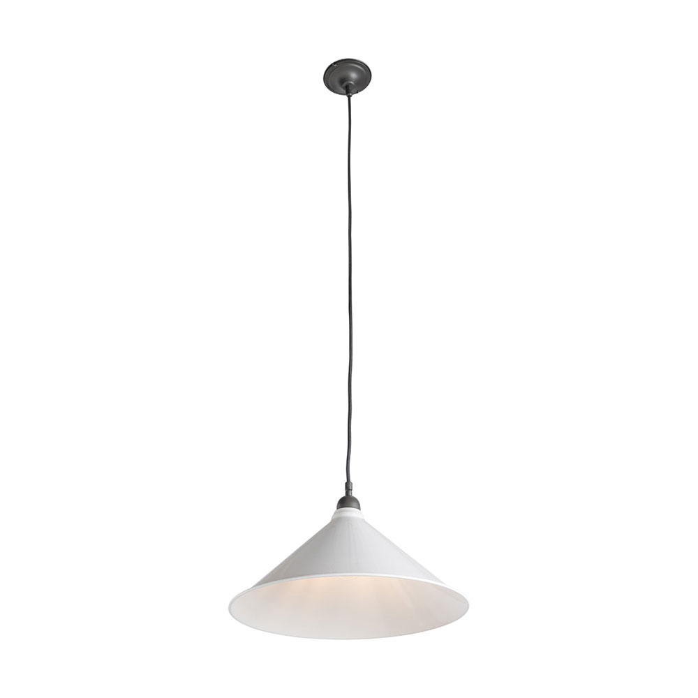 Its crisp white metal shade and traditional profile make it a perfect fit for rustic, farmhouse, and vintage-style interiors.