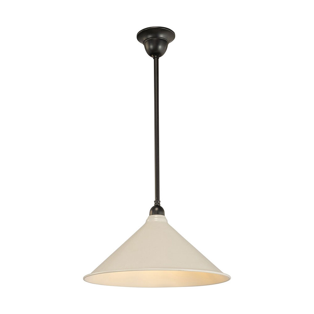 Its crisp white metal shade and traditional profile make it a perfect fit for rustic, farmhouse, and vintage-style interiors.