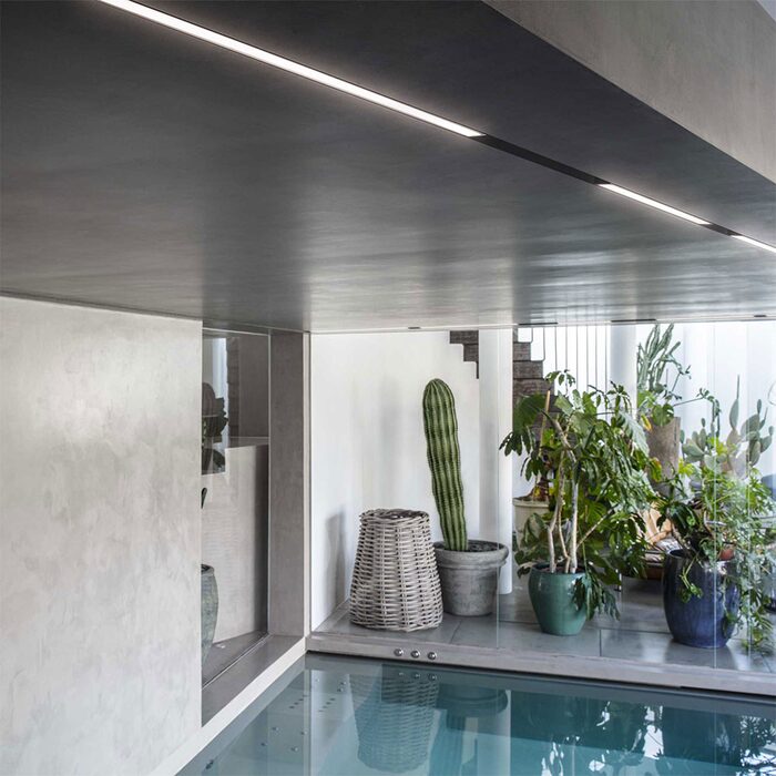 A magnetic track linear light system has the ability to illuminate many different types of spaces, with interchangeable lighting fixtures also available.