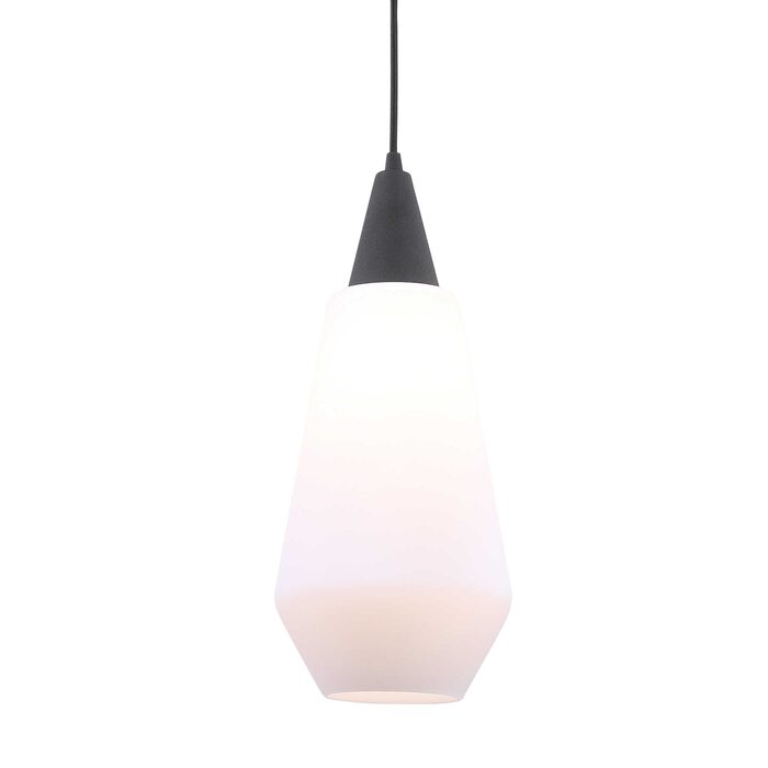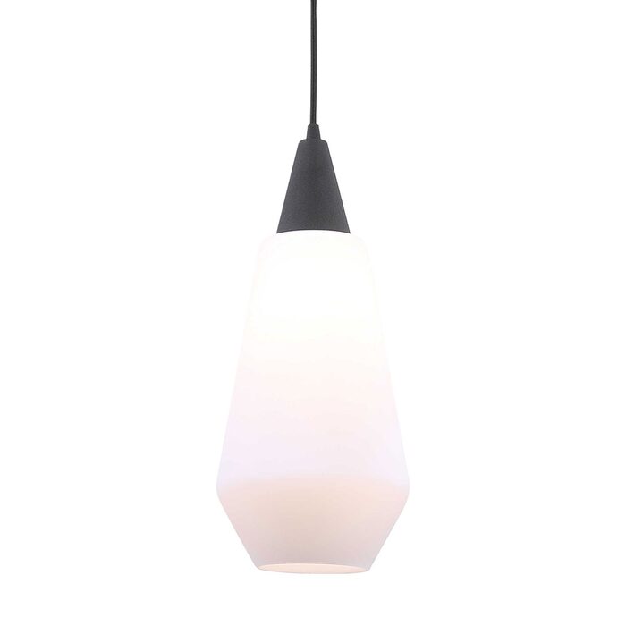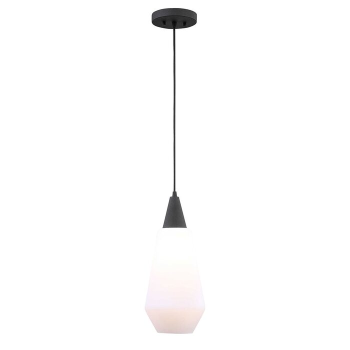 Classic black mini Pendant features rich opal etched glass with a hint of mid-century design giving us this fresh looking pendant.