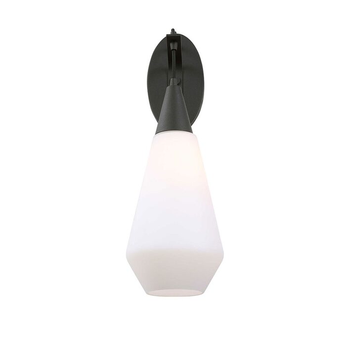 Classic black 1 Lt Sconce features rich opal etched glass with a hint of mid-century design giving us this fresh looking pendant.