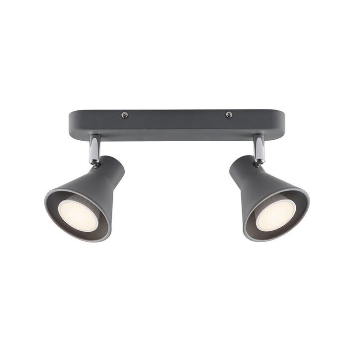 Discreet and practical spotlight fixture with two spotlights in grey.