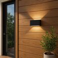 Elevate your outdoor ambiance with the Elaro Wall Sconce, featuring dual up/down illumination that casts balanced light from both the top and bottom.