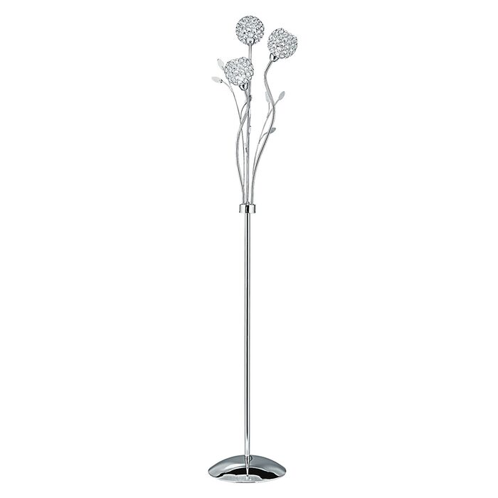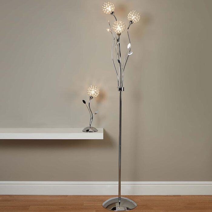 Elegant floor lamp with floral inspired design. Made with a simple chrome framework and leaf details.