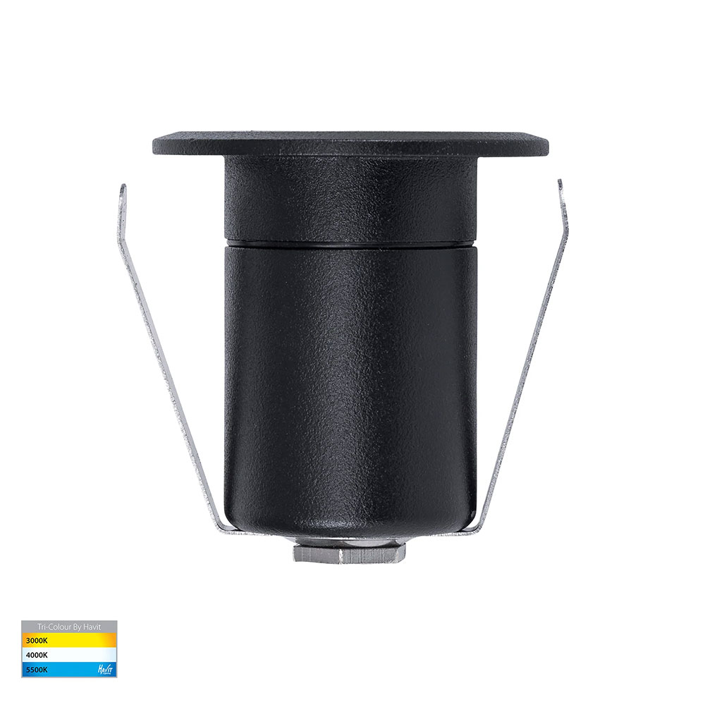 The Havit HV2881T-BLK-12V Elite is a 3W, 12V DC, dimmable, Tri-Colour (3000K/4000K/5500K) LED deck or inground light with a black, powder-coated aluminium body and a traffic-resistant lens.
