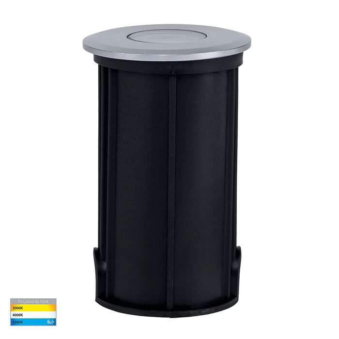 The Havit HV2881T-SLV-12V is a 3W, 12V DC silver aluminium LED deck or inground light featuring a tri-colour switch (3000K/4000K/5500K) and a 36° beam angle.